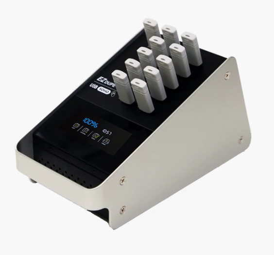 EZ Dupe's 10 target SOHO Touch USB duplication system features an intuitive touch screen interface, high speed USB duplication and bit-by-bit Compare function to confirm successful copies. The ergonomic design for efficient insertion of media, making it easy and convenient to copy USB.